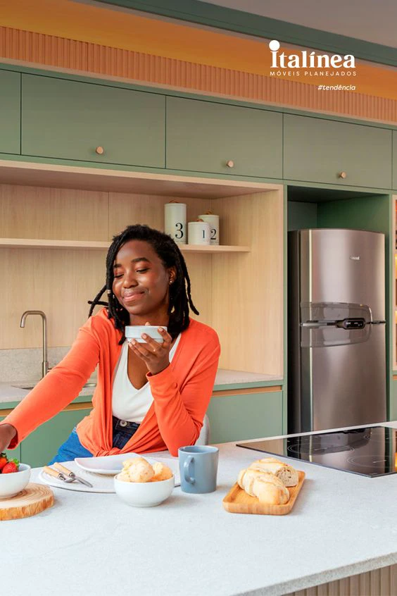 Prateleiras, nichos e cestas também são sempre bem-vindos, permitindo uma distribuição inteligente de alimentos e utensílios.