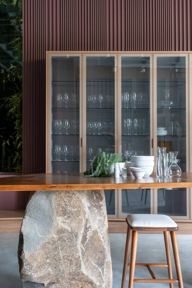 Para taças, copos e louças, por exemplo, você pode optar por uma cristaleira ao invés de um armário fechado.