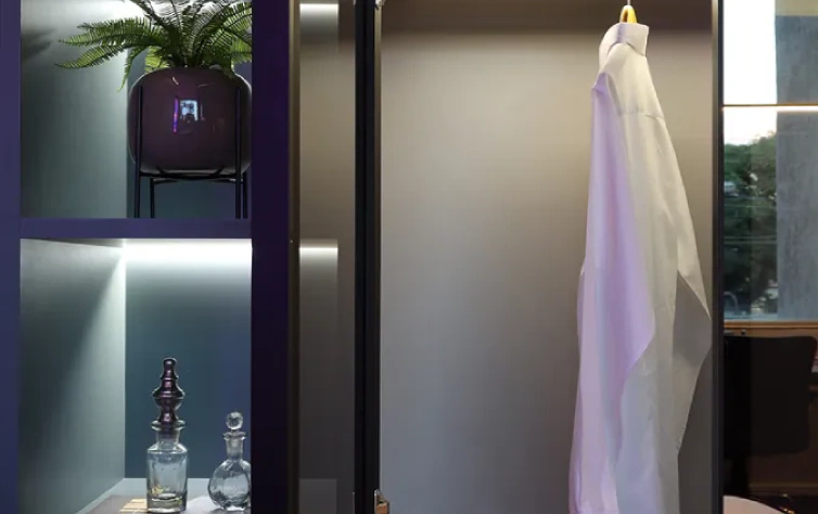 Móveis planejados podem incluir armários compactos que oferecem armazenamento sem ocupar muito espaço.